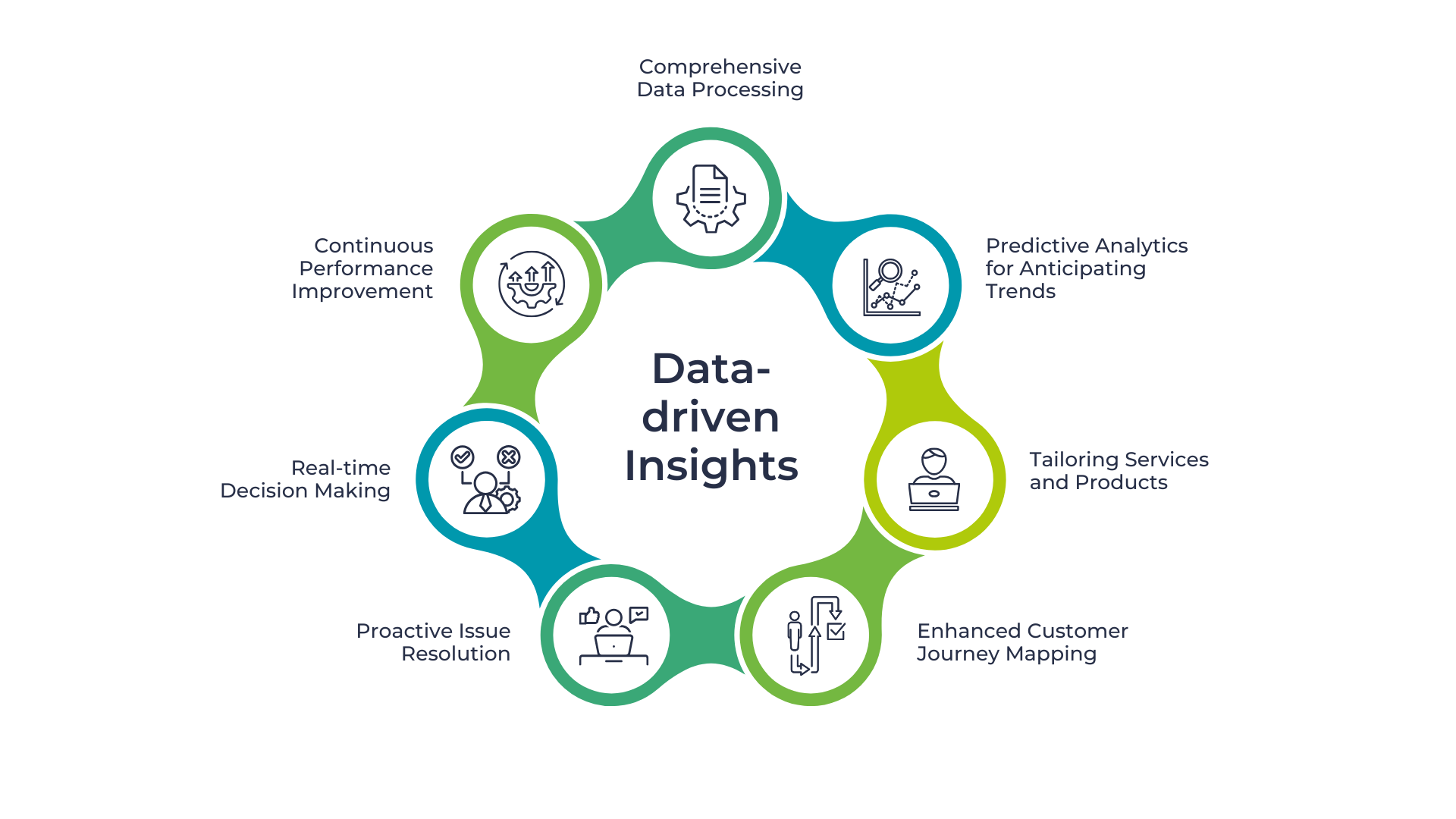 Analytics powered by AI can handle substantial amounts of customer data, offering practical insights for making business decisions. This data-driven approach helps improve services, products, and overall customer satisfaction. Spotify uses data-driven insights to create personalized playlists for users. By analyzing listening history, user preferences, and music trends, Spotify’s AI algorithms curate playlists tailored to individual tastes, keeping users engaged and satisfied. Let’s explore how the data-driven approach is reshaping services, products, and overall customer satisfaction: